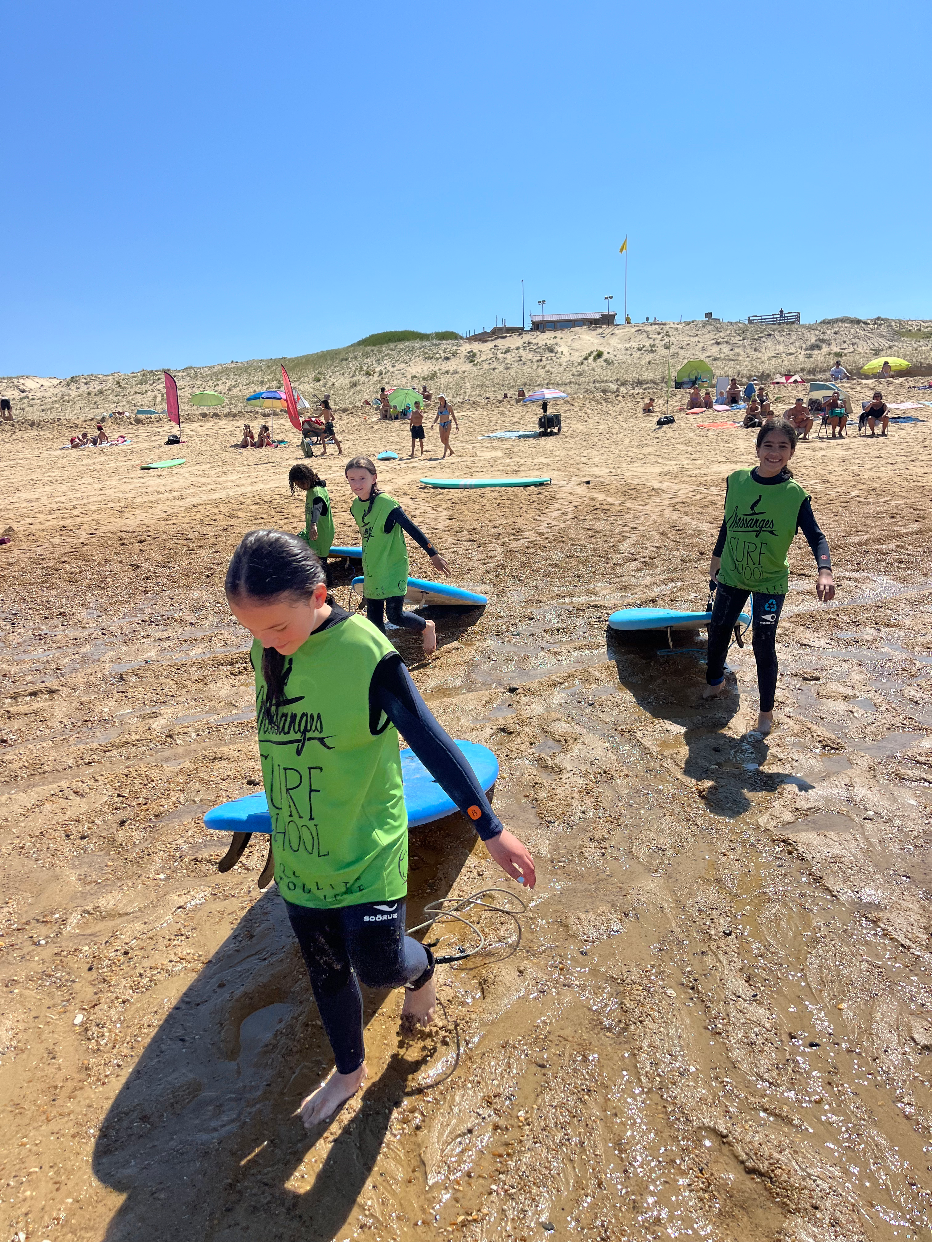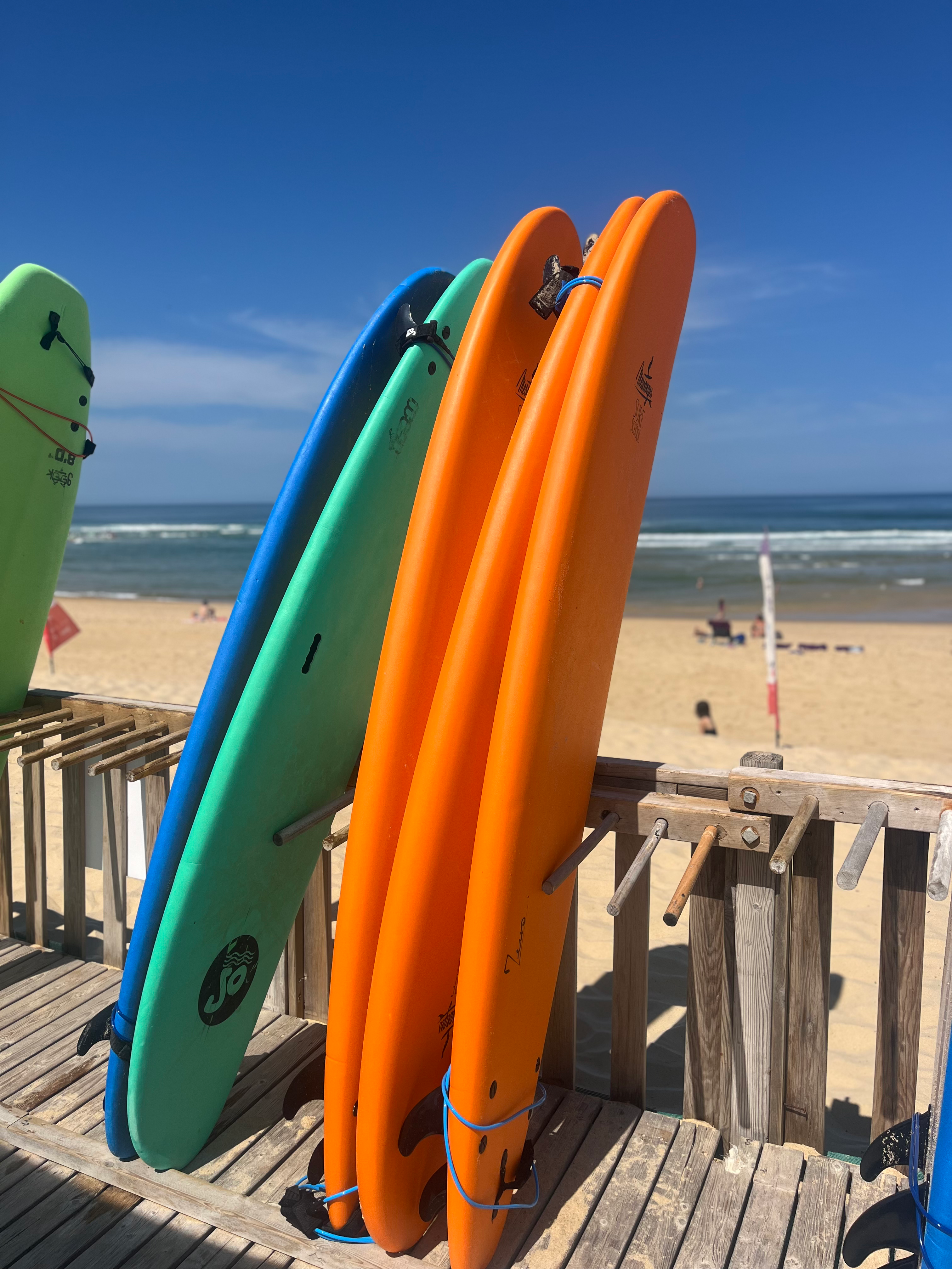 - 4 leçons de surf, encadrées par des moniteurs diplômés de l'école de surf choisie par nos soins